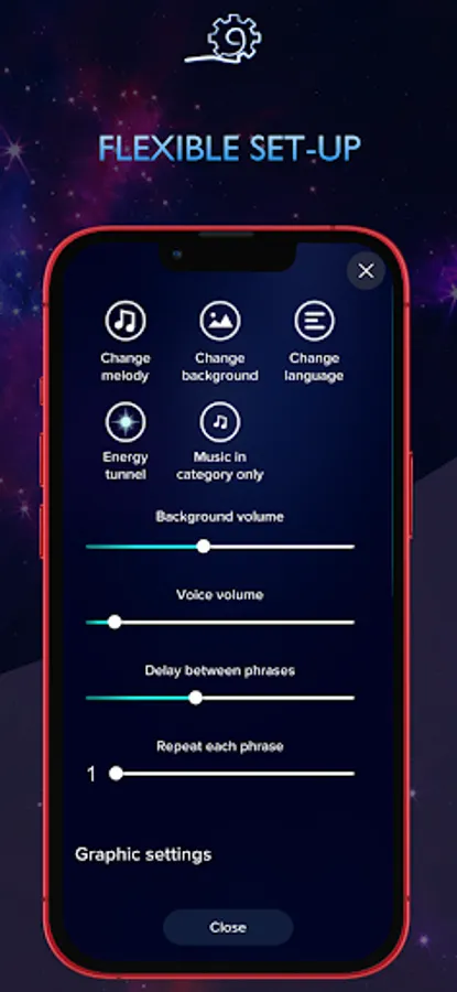 Several categories include a lot of audio affirmations, allowing from beginning to end to go all the way into the depths of your subconscious, forming the settings for it. Motivate yourself in order to achieve all the goals.