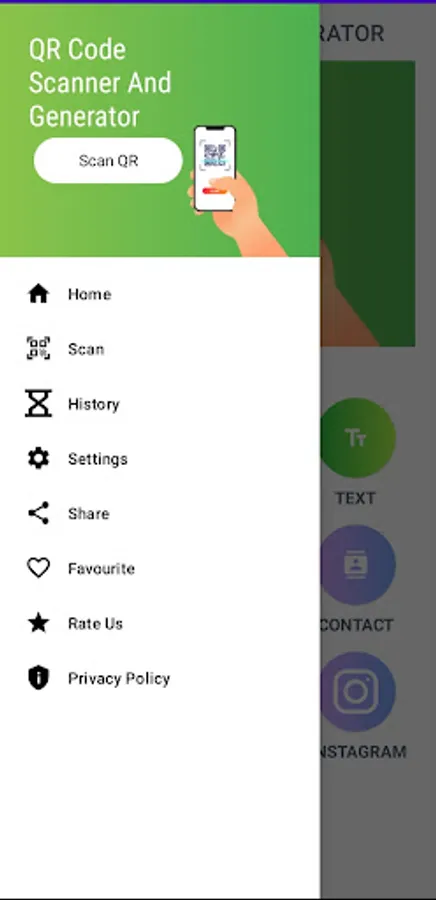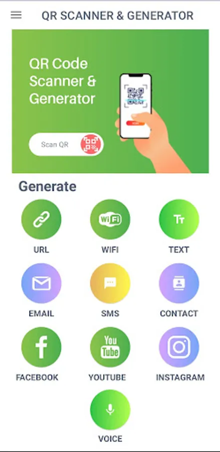Other functionality: you can easy generate QR bar code or Create QR, Scan Image, Scan from Gallery, Share your contact info via QR