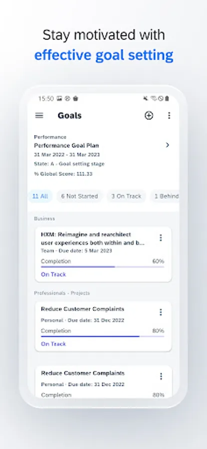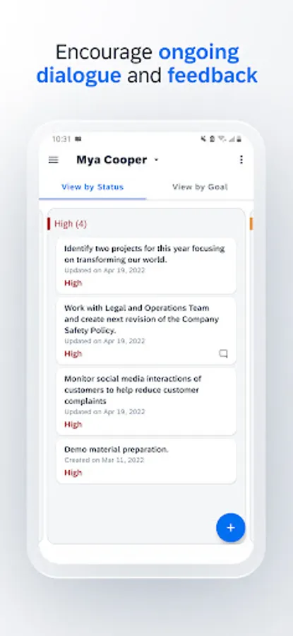 • Manage your active goal plans and update your goal status and progress towards completion.