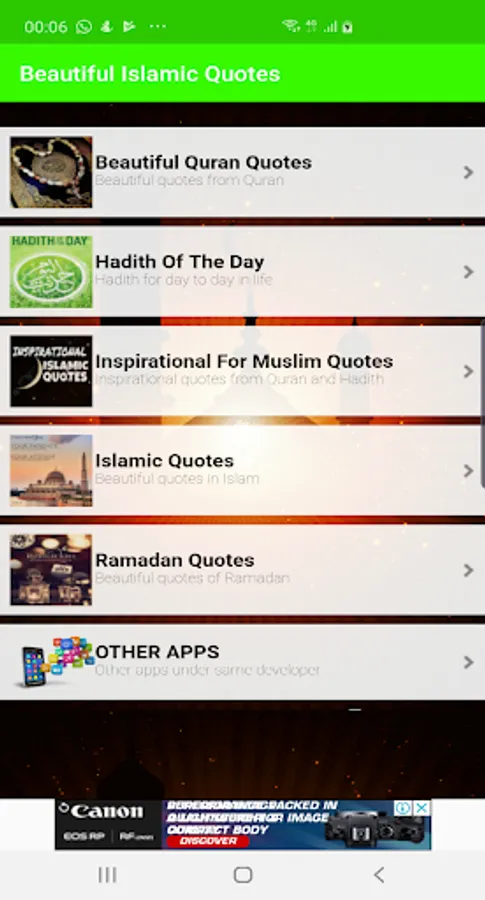 Beautiful Islamic Quotes is an application that contains a collection of quotes from Al-Quran and Hadith.