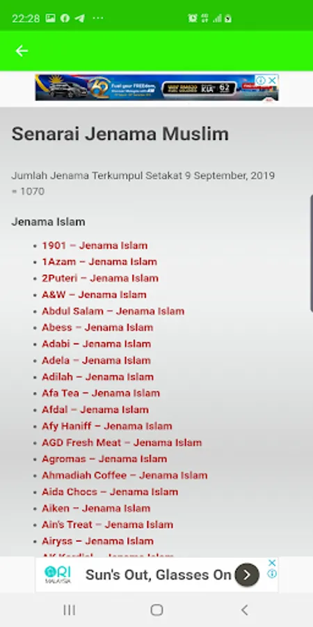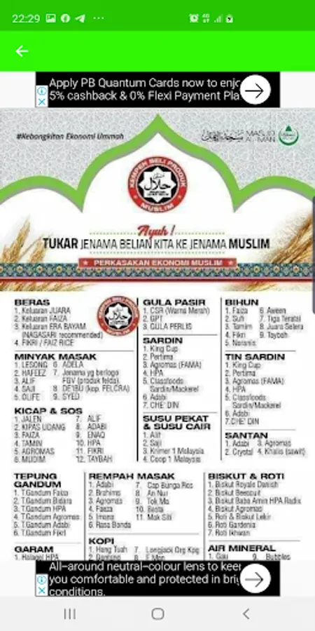 Apps ini memaparkan senarai jenama-jenama muslim yang terdapat di Malaysia.