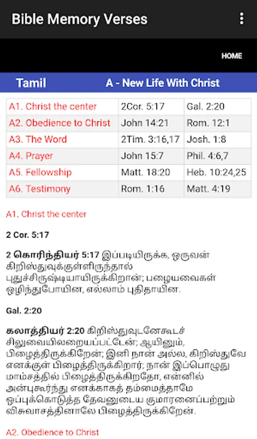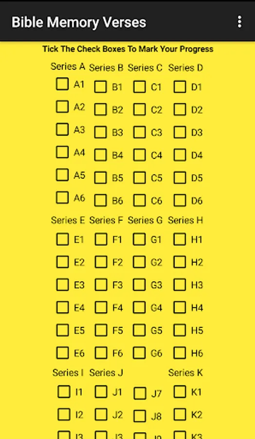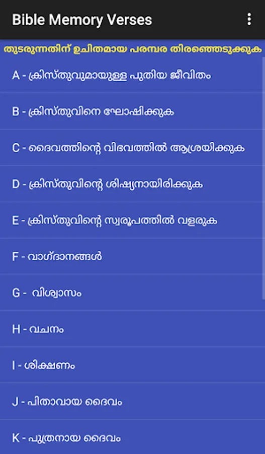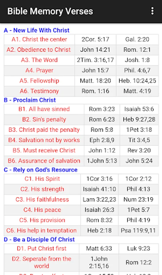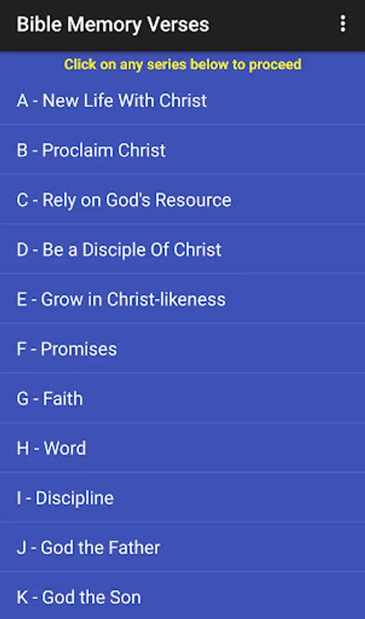 This App is developed in order to help the believers to be able to learn and memorize the Bible verses in a categorized sequential order