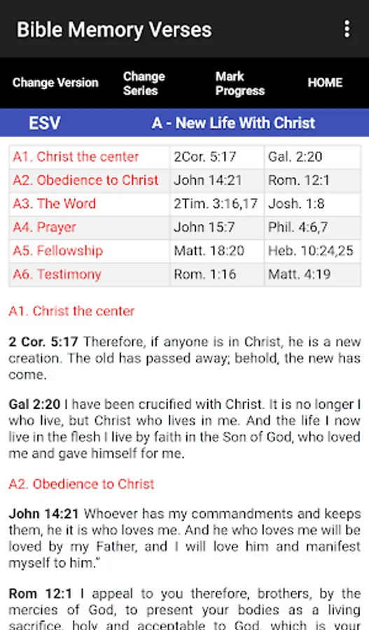 We use this series of verses in our church and we learn & memorize two verses each week and recite on Sunday to each other.