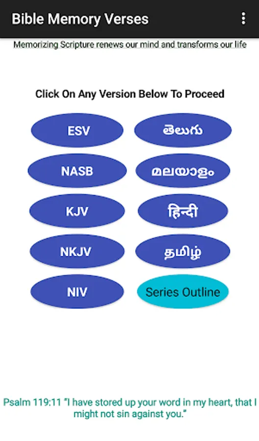 This App is best to be used by churches and by individuals in order to memorize bible in a serial and categorized way, eventually this helps us to renew our mind and to be transformed.