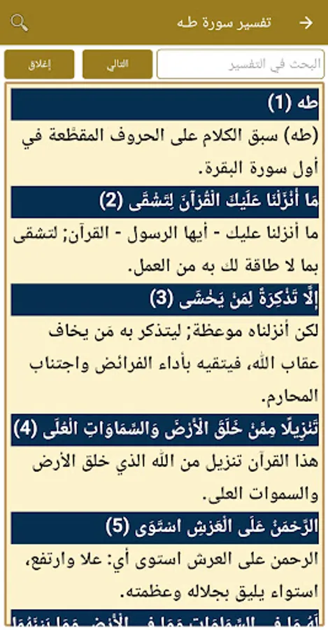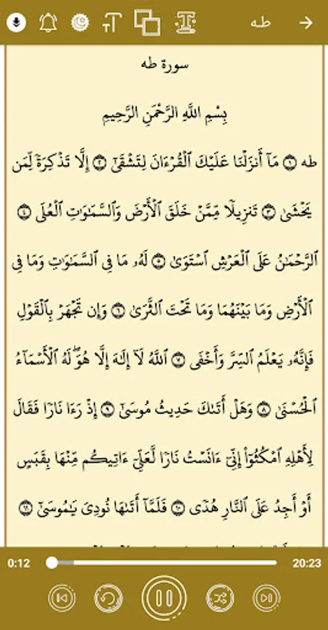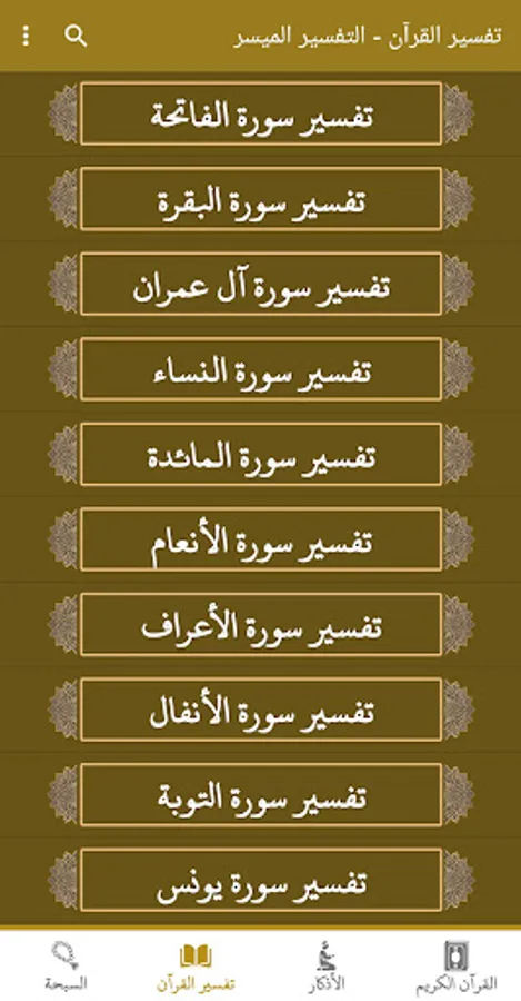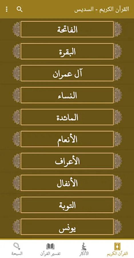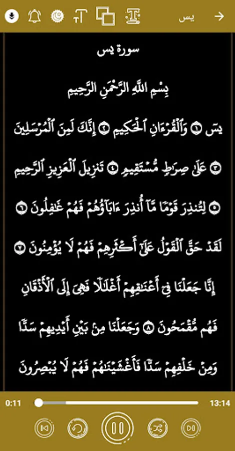 By pressing the (Next Surah) and (Previous Surah) button, you can listen to the previous surahs of the surah you are listening to, as well as the following surahs. The program also shows you the duration of each surah so that you are aware of this.