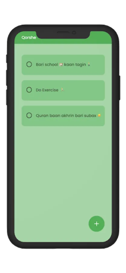 The Qorshe app displays your plans in a list format