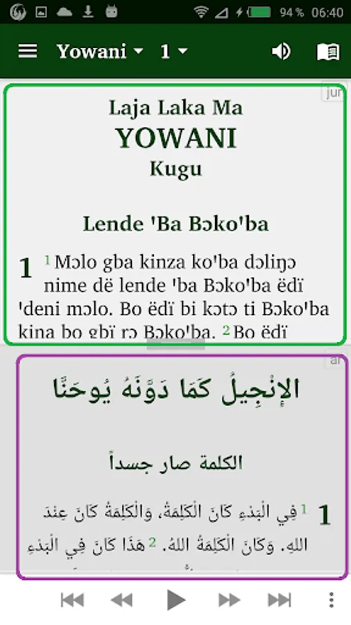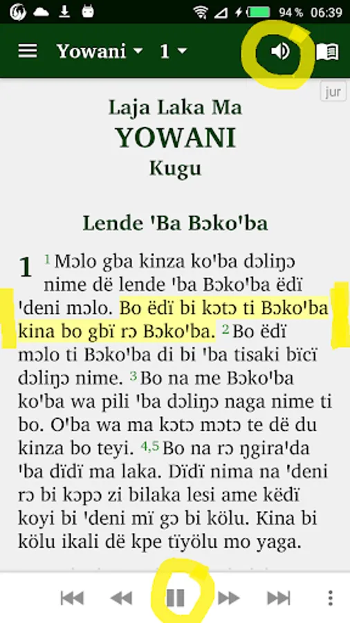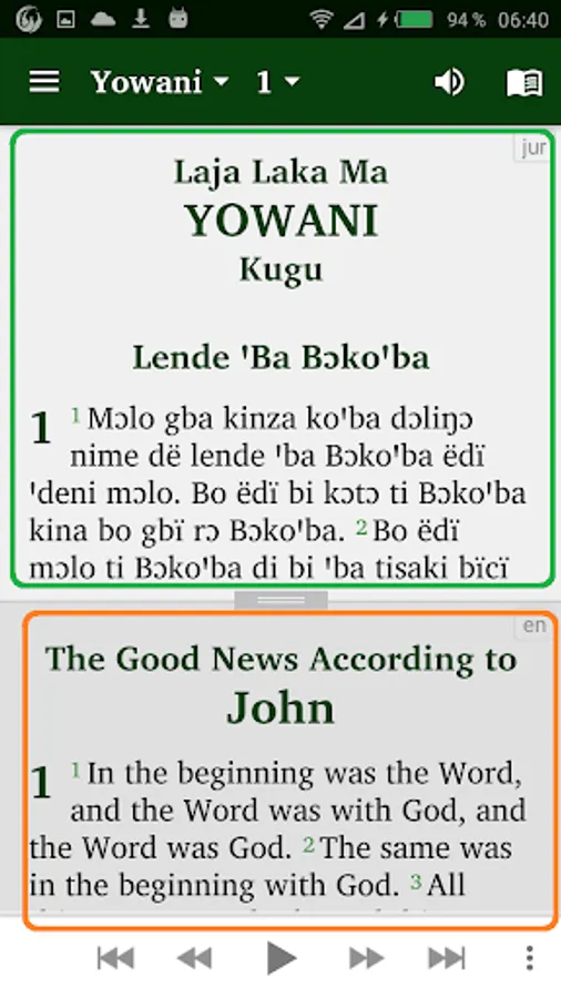 • Give your phone permission to download the audio files for the Jur New Testament texts. Once downloaded, the audio files will remain on your device for further use in offline mode.