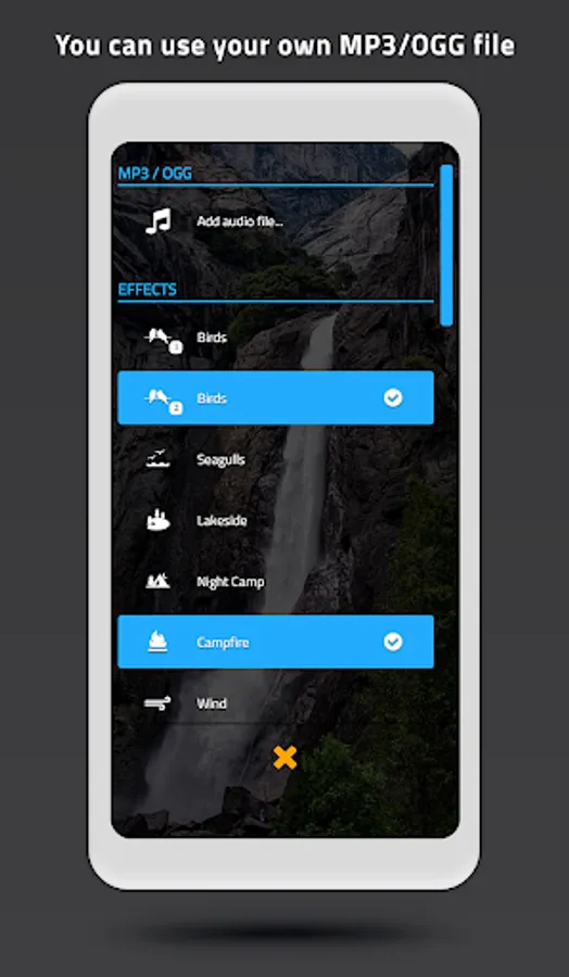 * Opportunity to personalize each sound by adding your own sound effects like sounds of thunder, wind, fire, car, train, plane etc.