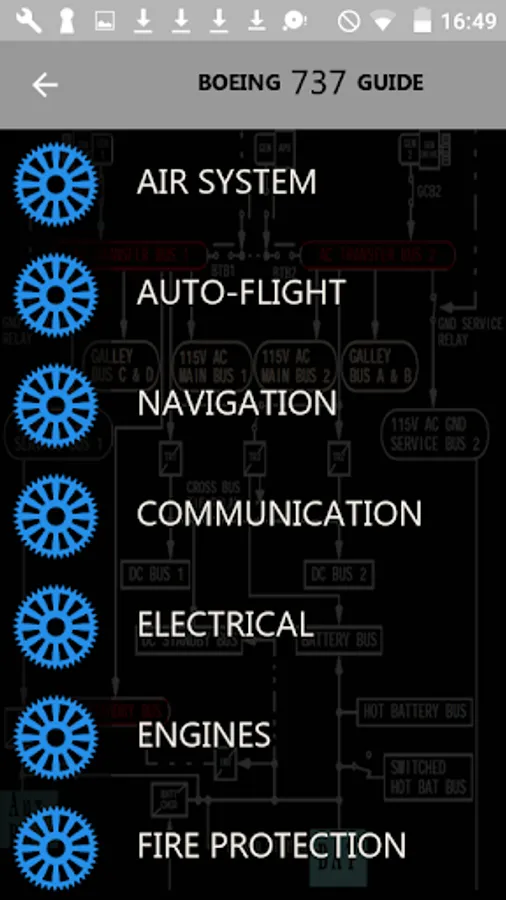 Air System, Auto-Flight, Navigation, Communication, Electrical, Engines, Fire-Protection, Flight-Controls, Fuel, Hydraulics, Ice & Rain, Landing Gear and Limitations.