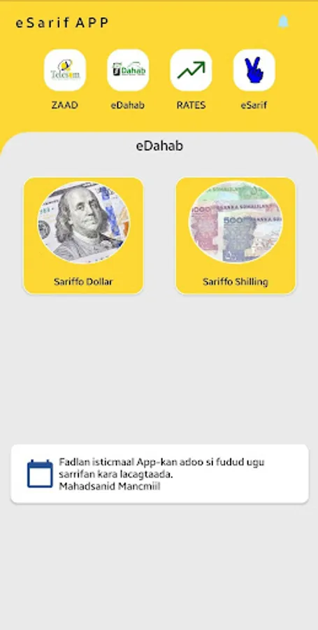 eSarif Xuseen Daahir is one of the leading online exchange companies in Somaliland.