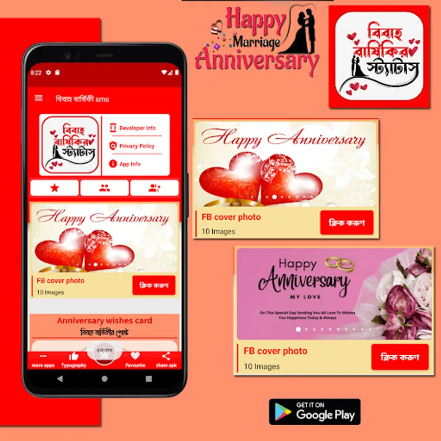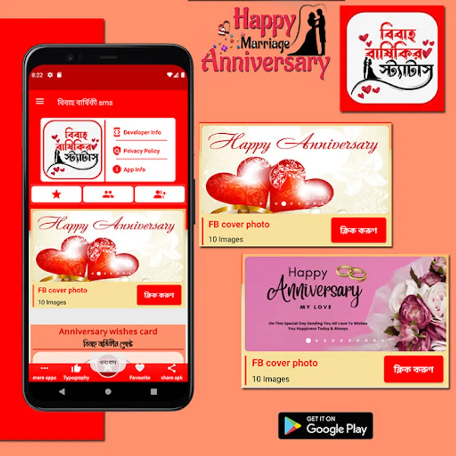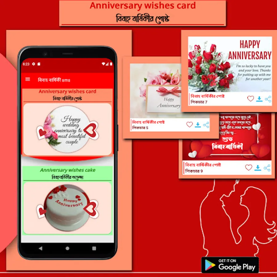 এখনি ডাউনলোড করে নিয়ে নিজের বিবাহ বার্ষিকী উদযাপন করুন। আপনার প্রিয়জন বন্ধু-বান্ধব ও ভাই-বোন, বাবা-মা সহ সকলকে বিবাহ বার্ষিকীর শুভেচ্ছা জানান। সাথে বিবাহ বার্ষিকি ছবি ভিডিও করে রাখুন ভবিষ্যতের জন্য। ধন্যবাদ