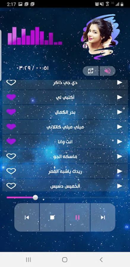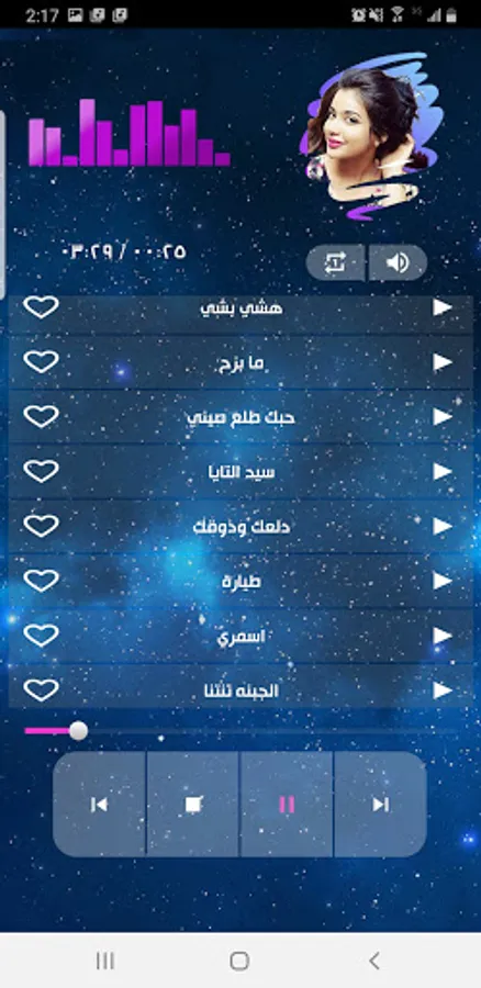 Program features: The feature of automatic transmission of songs - The feature of repeating the same song - Hearing the song in the background of the phone