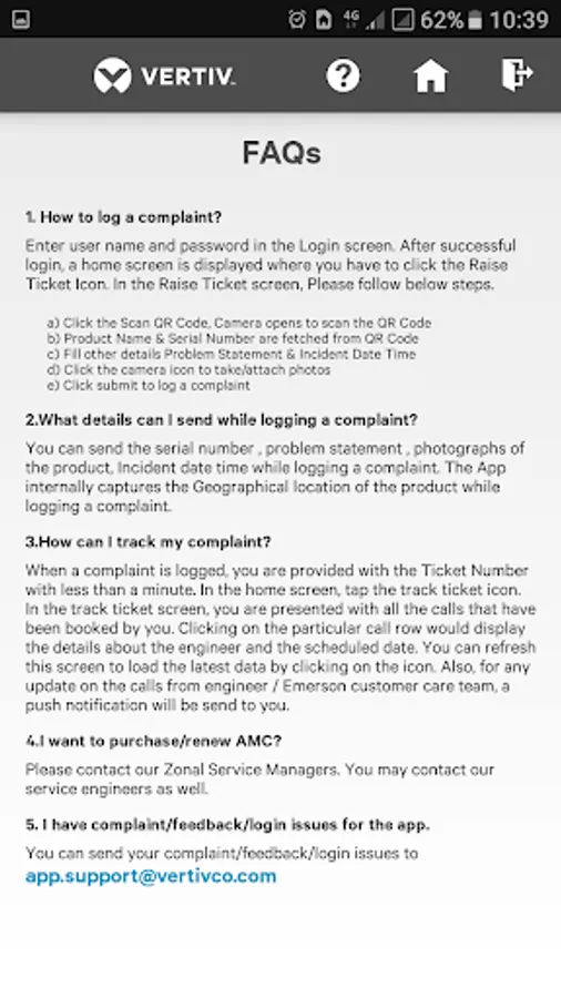 Vertiv India Customers can log the complaints instantly using this App.