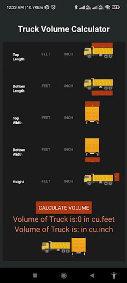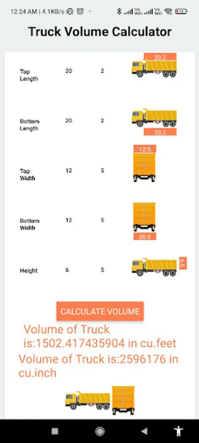 Calculate the Volume of a truck by giving length, width and height of its body.