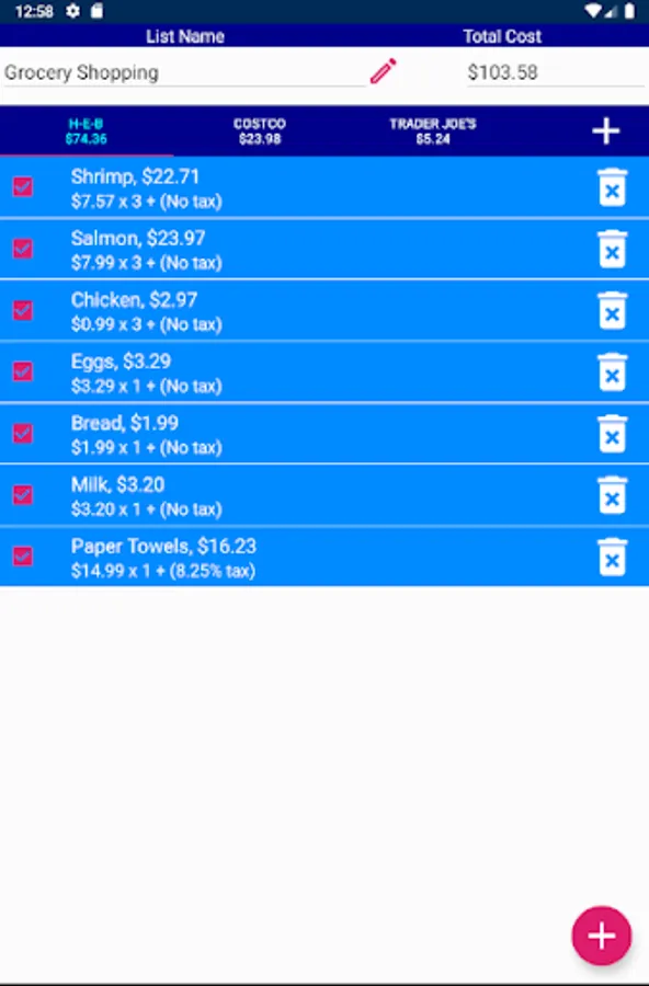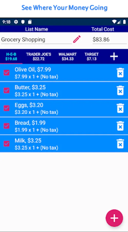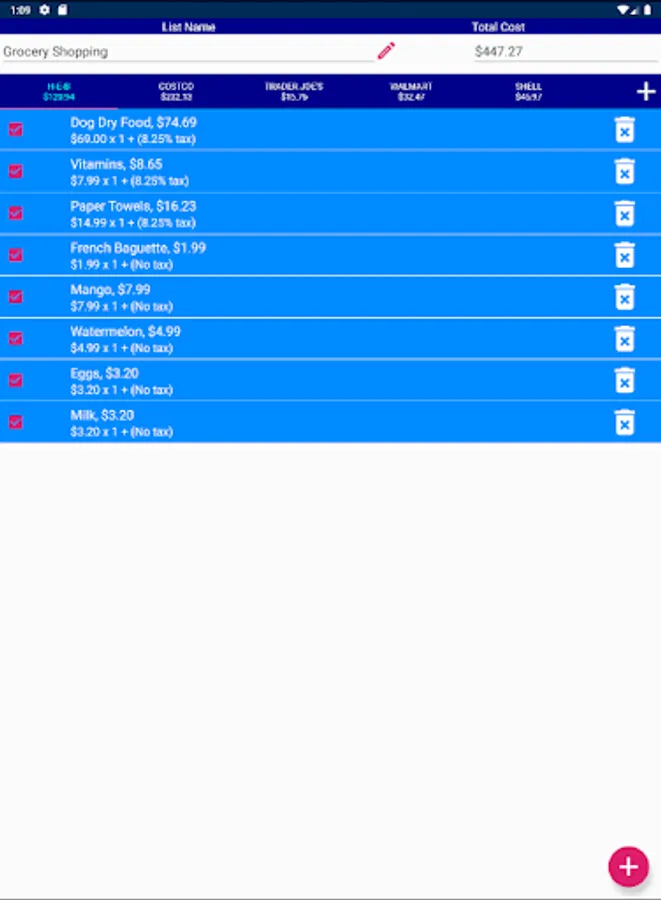 Our Shopping List and Calculator helps to stay on shopping budget.