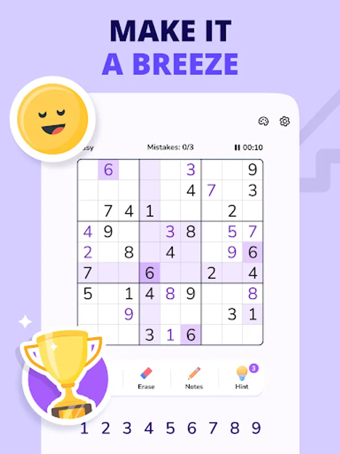 Our diverse puzzle range caters to everyone, from beginners to Sudoku experts. Improve your logical skills and memory across various difficulty levels. Our brain game features helpful tools like hints, auto-check, and duplicate highlighting for an enjoyable solving process. Each Sudoku puzzle is uniquely designed with a single solution for a rewarding experience.