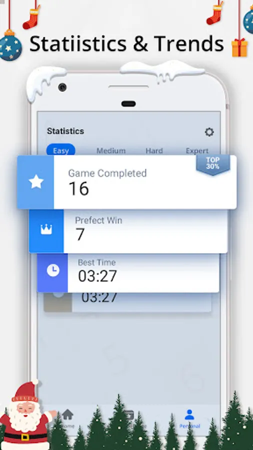 - Statistics. Track your progress for each difficulty level: analyze your best time and other achievements