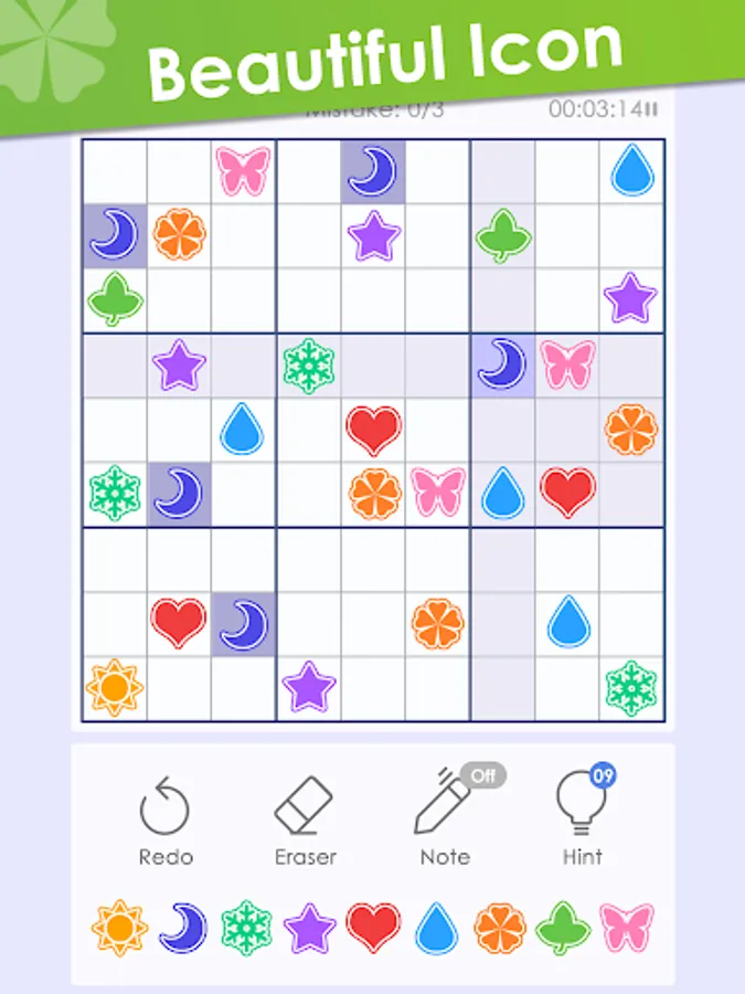 The attraction of this new sudoku game is the beautiful theme: high-quality colors and images, large text that does not affect the eyes, customize your favorite background!