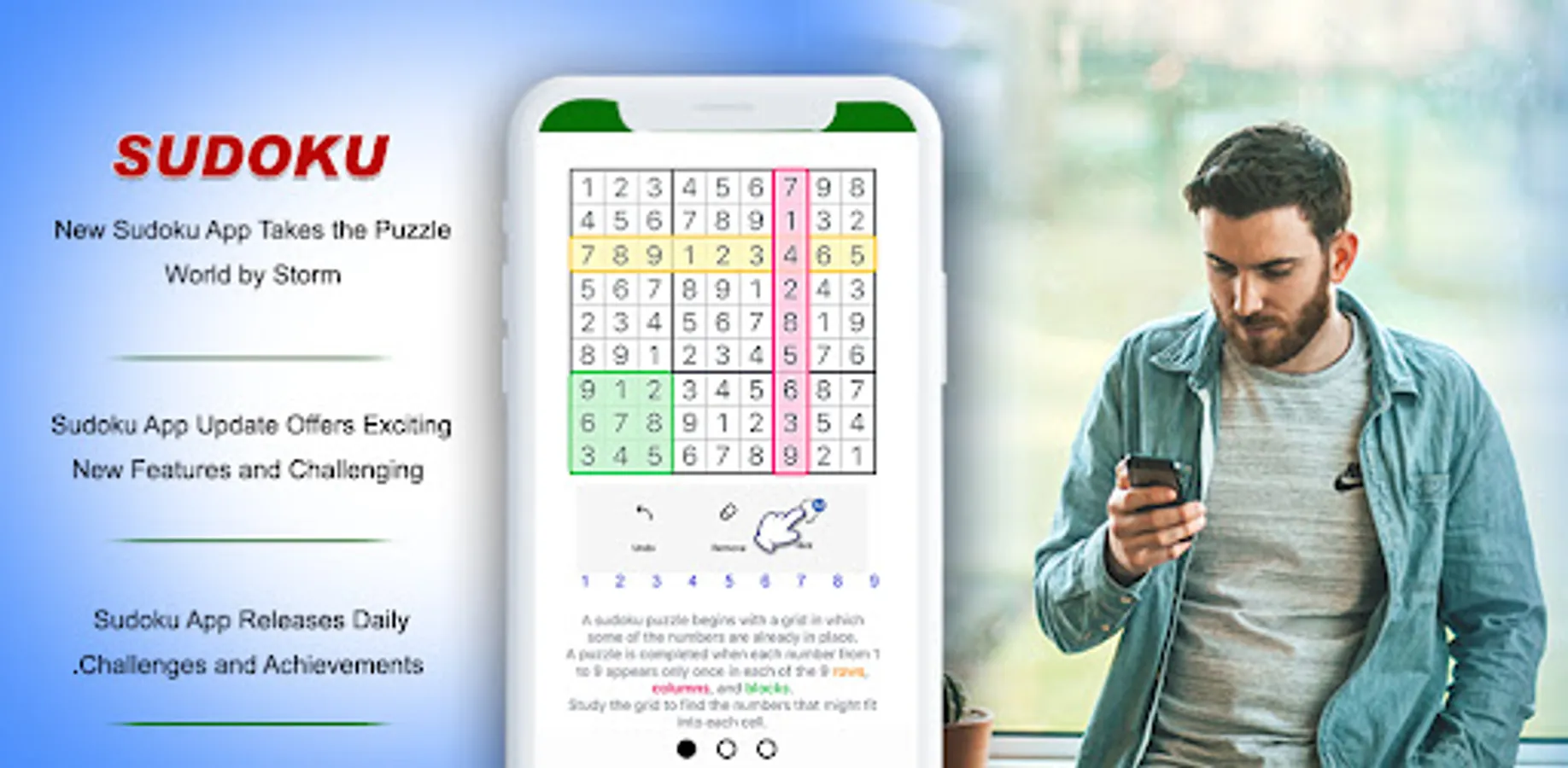 The game is offline and can be played without internet connection. So, you can play Sudoku Puzzle for free and any time anywhere