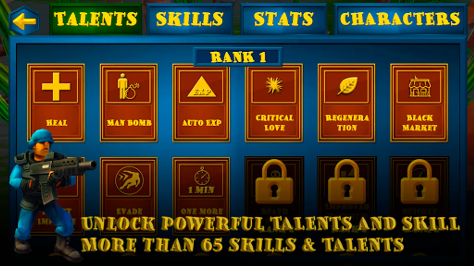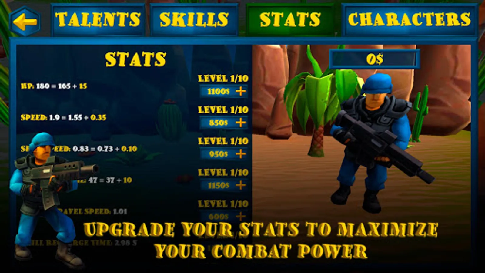You want to kill zombies? Then, you will need your ultimate skill. Each character has a different one. Use it to annihilate zombies and accomplish missions in order to unlock more talents and skills. You can even upgrade the stats of your squad improving your survival ability!
