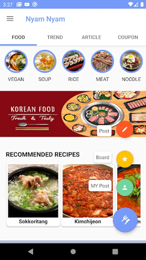 This is the app for those people who are interested in Korean food and culture that can try out cooking by provided recipes. You can share your picture and simple statement on the board(post) section once you complete cooking. Also you can learn how to pronounce and write the name of each food, furthermore, you can learn about other factors about Korea by trends and article sections.