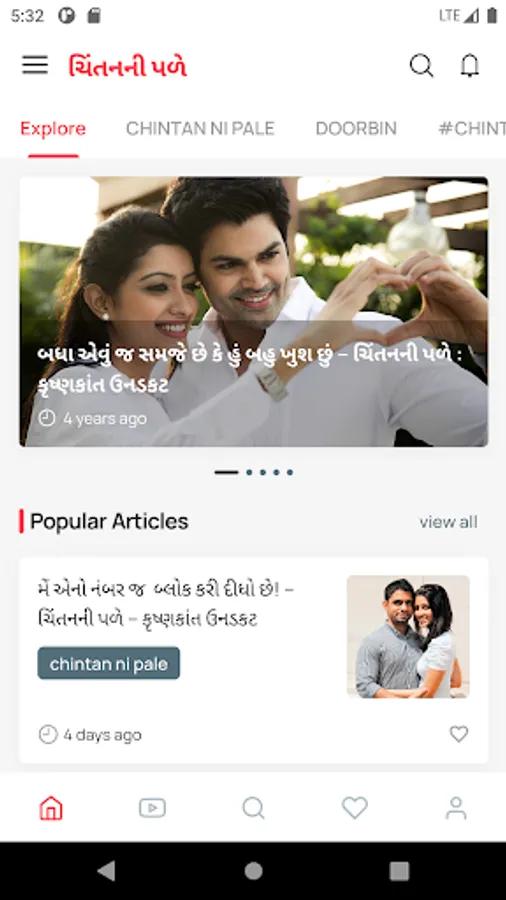 This application is the articles written by Krishnkant Unadkat. It contains articles about life, growth, joy, love, emotion, positivity. The name of the column is Chintana. Other articles are from the telescope column. The general reader gets knowledge and information in the telescope column. Binoculars contains articles related to current topics.