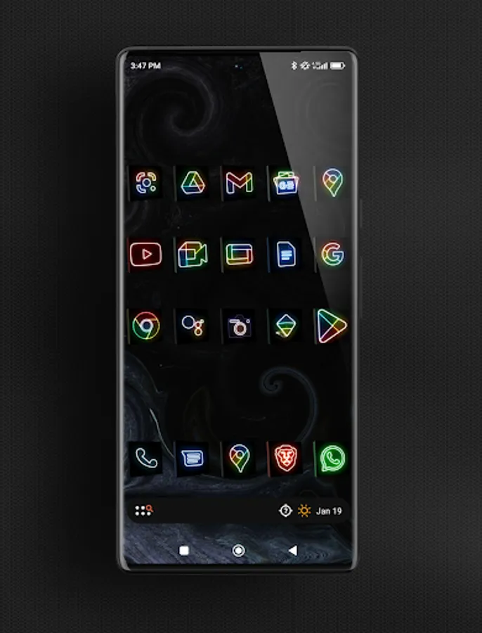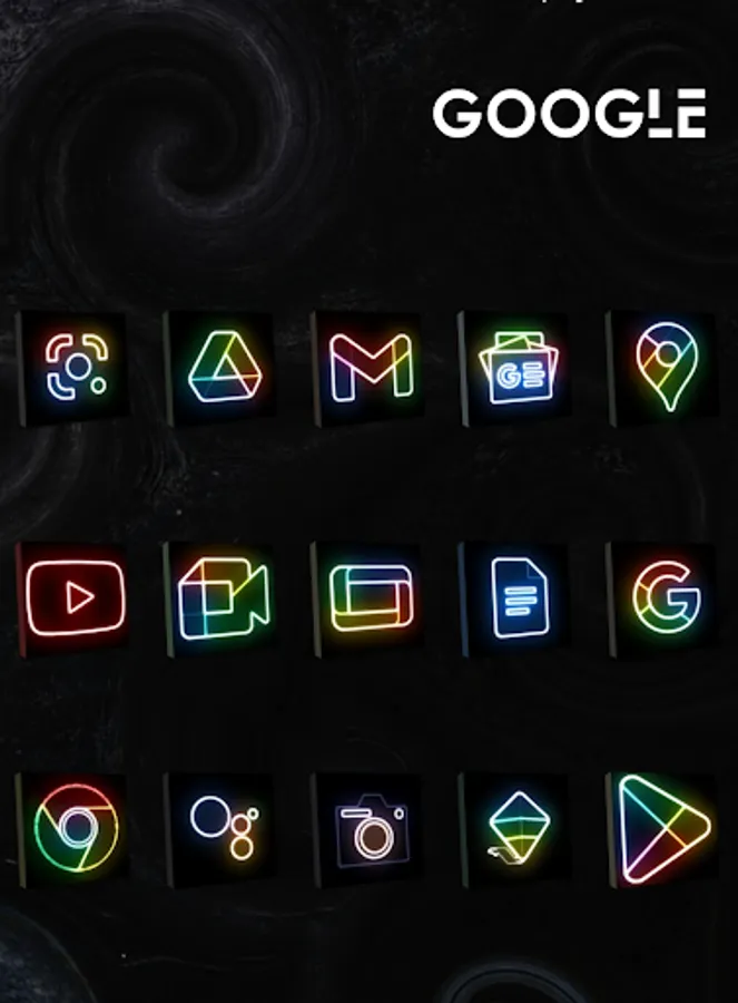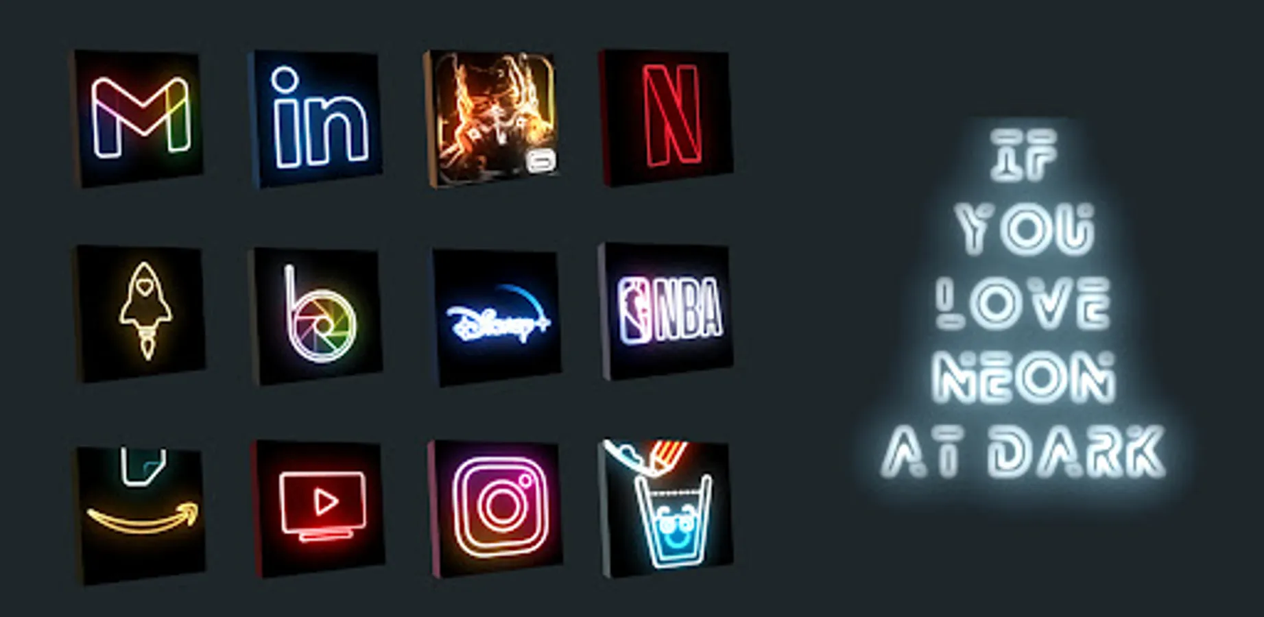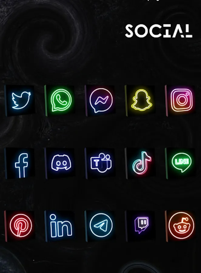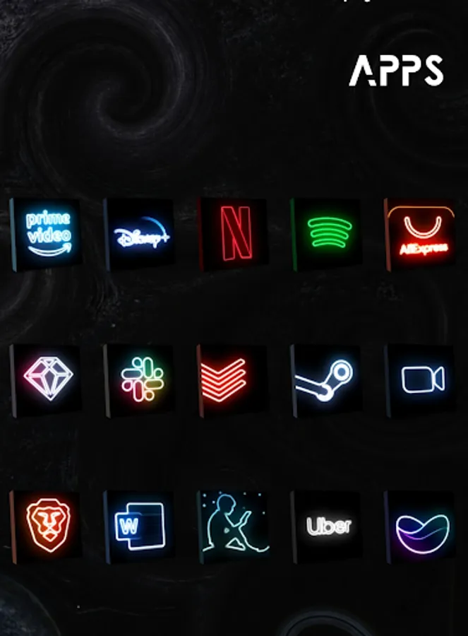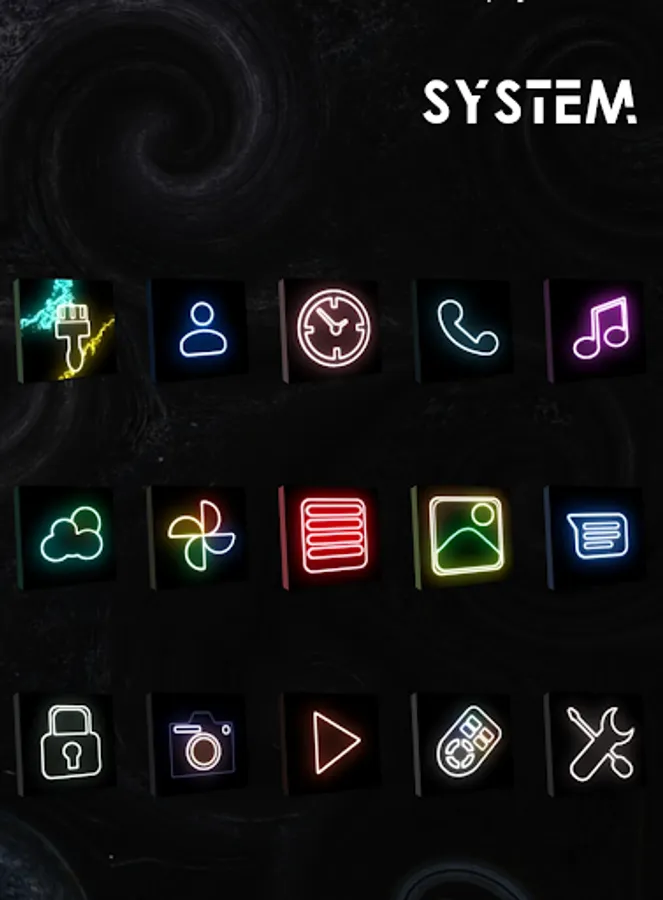 Change your screen to disco environment with neonized icons at dark box.