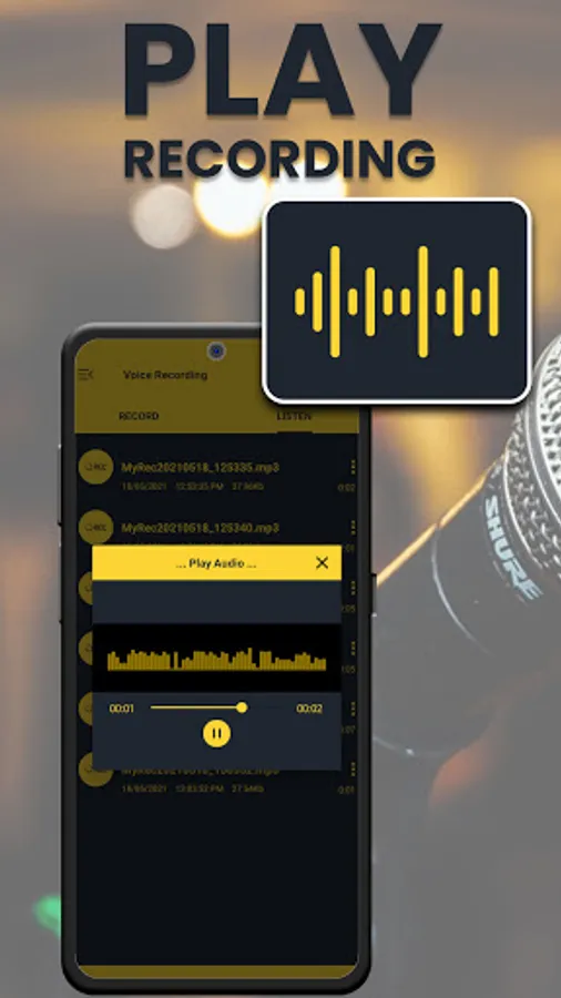 Background voice recorder is easy to use to record audio in background with one tap. Useful features include continuous audio recording while the app is in the background. The background audio recorder provides high quality recordings without limits of time.