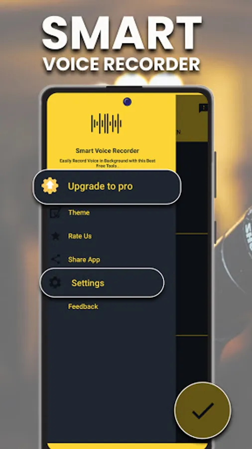 Background sound recorder for android also have the option for setting voice recorder according to your requirements. You can easily use your mobile and at the same time also record voice in background around you.