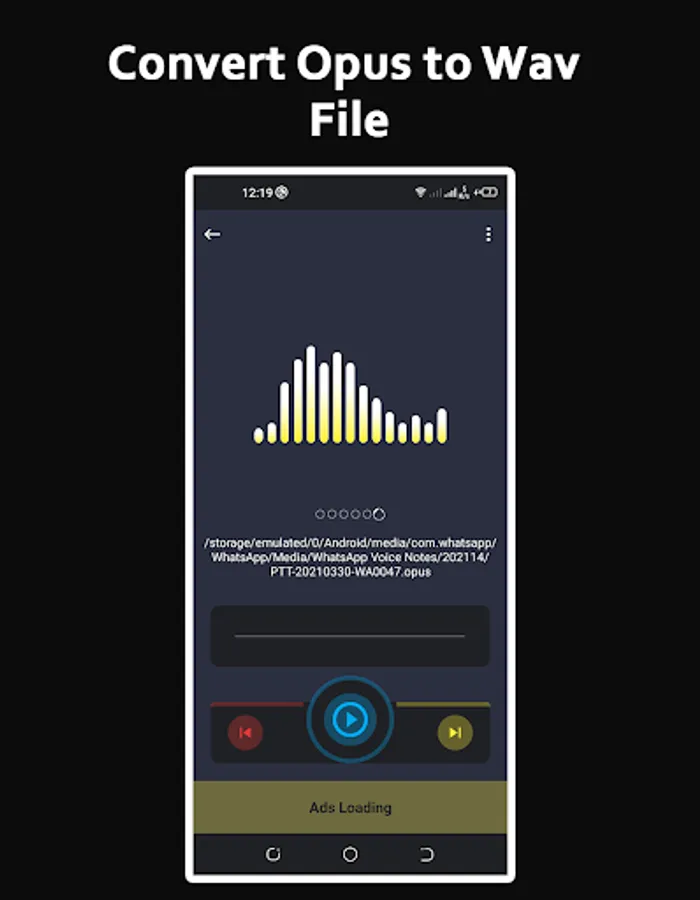 Opus media player not only play opus audio format file but the app have also the feature to convert opus audio message to wav, mp3 audio format. Opus Audio player app provides a lot of features for managing your opus voice notes messages such as deleting, sharing and organizing that make it the best opus audio manager for WhatsApp's voice notes.