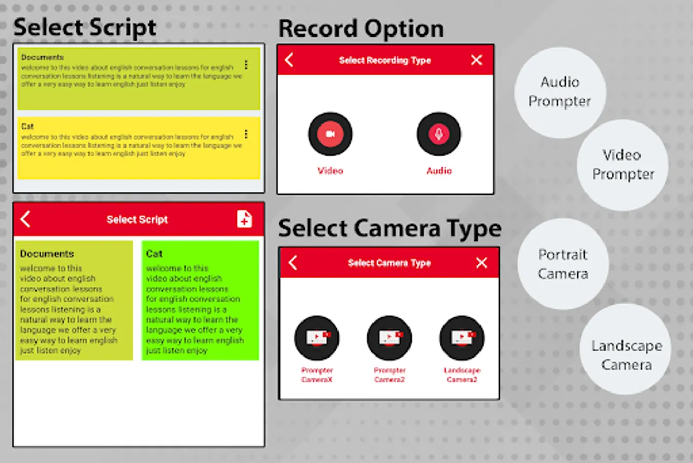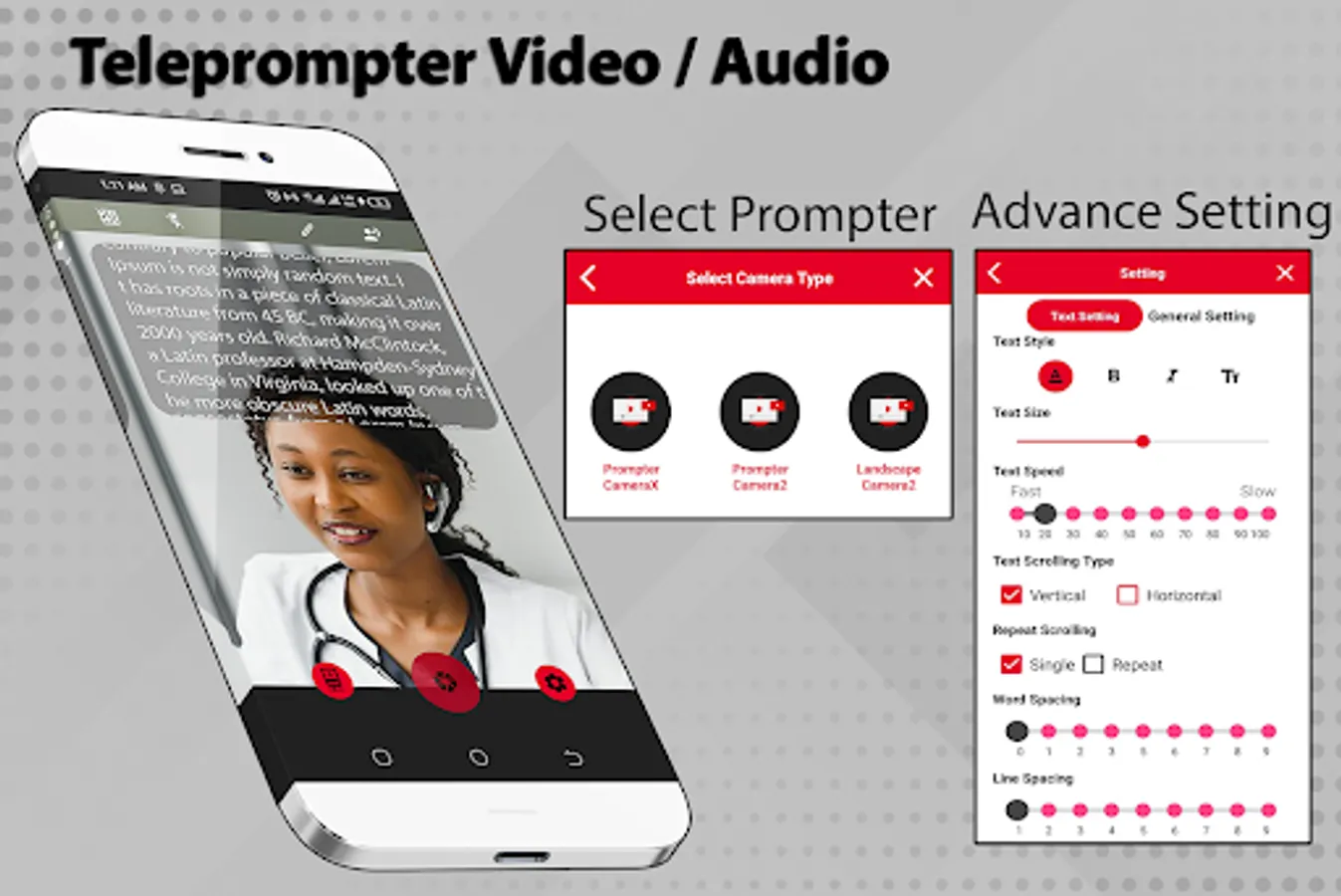 Most of the time you need to record video of speaking some script itβs difficult to remember all script in short time with this phone teleprompter you can read your script and record a video clip from the front & back facing camera at the same time, the best part of the app you can also create audio of any script with this nice tools. You can easily customize the setting of script text scrolling speed and other staff.