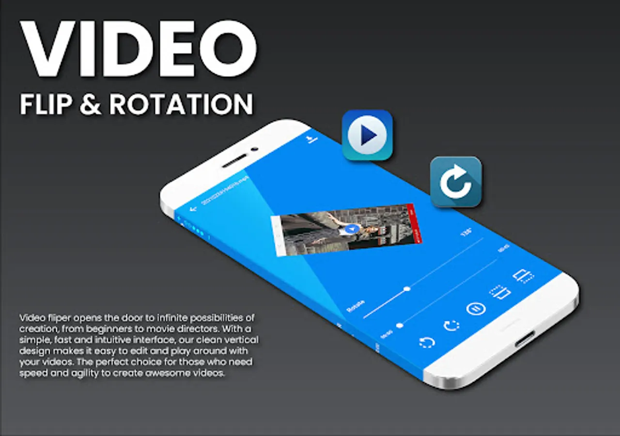 Video flipper is smart video editor tool which easy select video and rotate in your desire angle. Rotate video in horizontal and vertical view very quickly with quality control. This app provides the facility video flipping and video rotating. Just rotate video instantly and maintain its original quality by one click and preview the flip video.