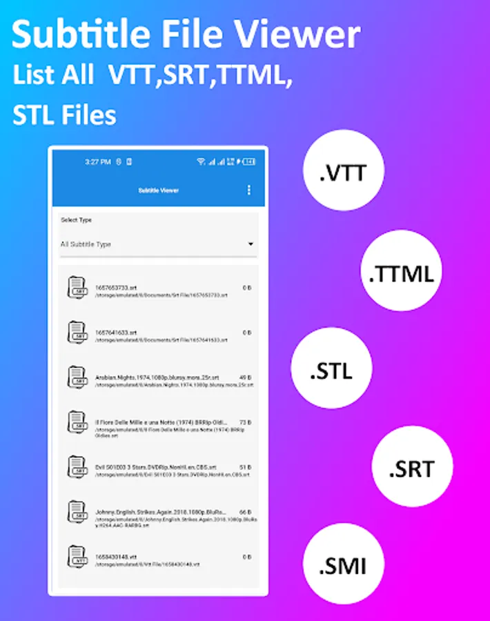 The work as srt file viewer, you can easily read movie subtitle file with this nice subtitle reader app for android. The app work as srt file viewer for android.