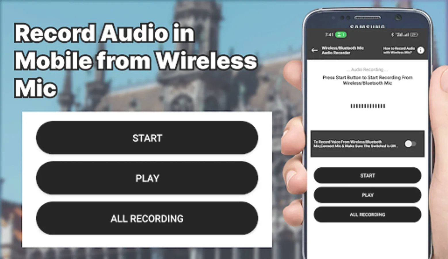 Wireless Mic Video Recorder with and Wireless Mic Audio recording is the best tool for android to record video & record audio voice from Bluetooth Mic and wireless headset. In general Bluetooth video recorder work to record video recording not detect clear sound from away distance which is difficult for understanding voice message with wireless video recording. Bluetooth Mic Video recording for android record video from camera and audio from Bluetooth Audio Source e.g Mic , Headset