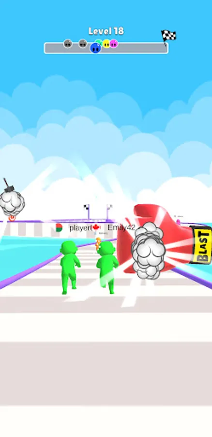 Race to the front of the line by bonking you opponents and passing them on the track. Hit targets to creatively take your opponents out of the race.