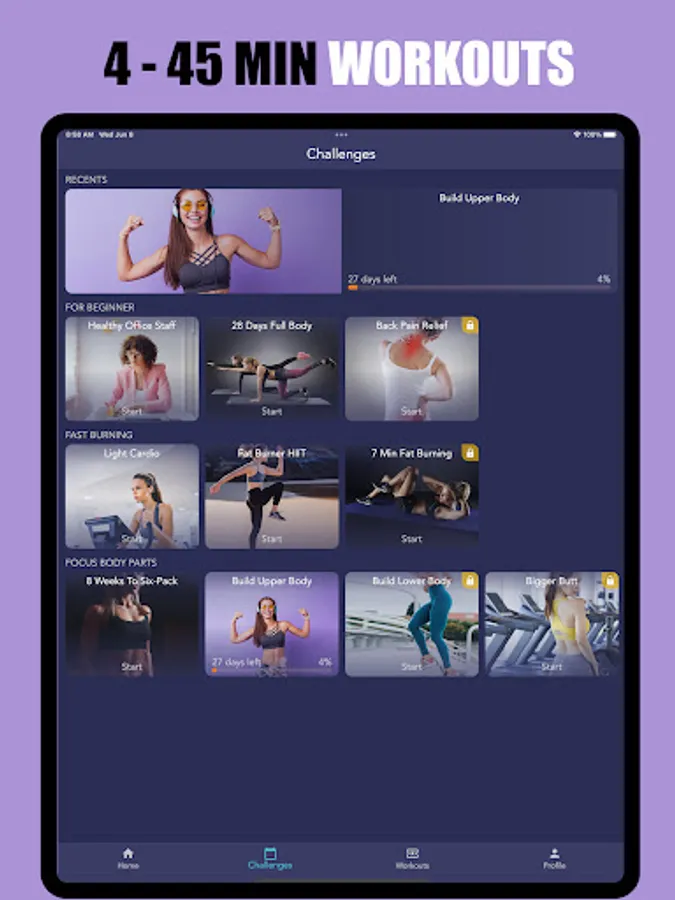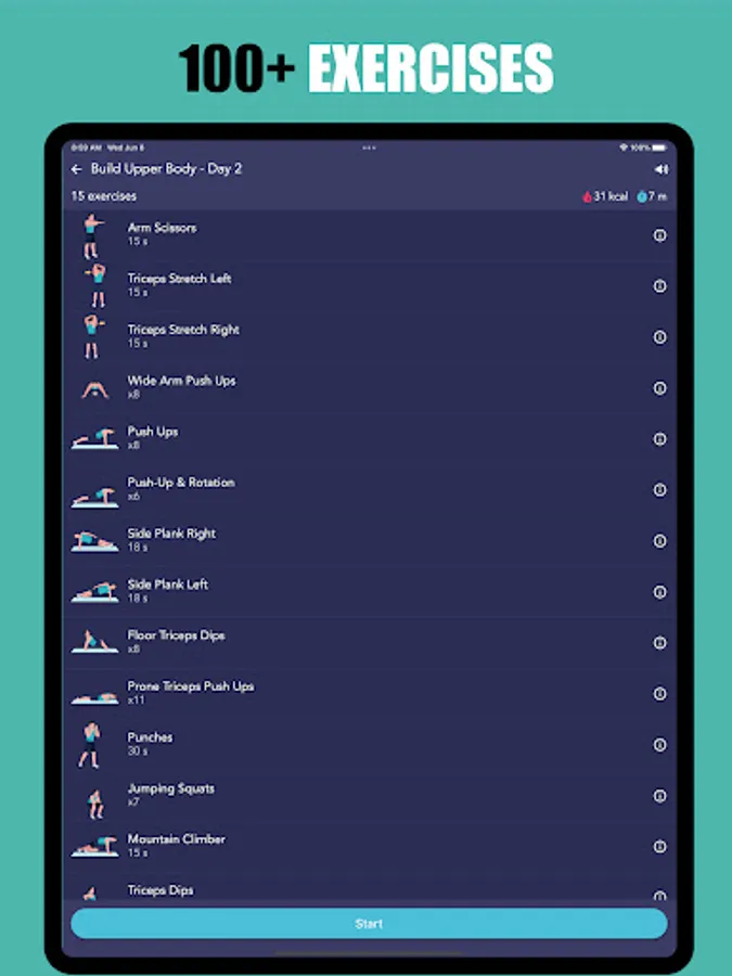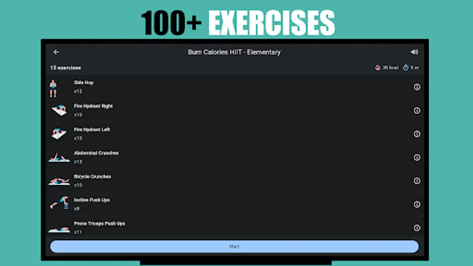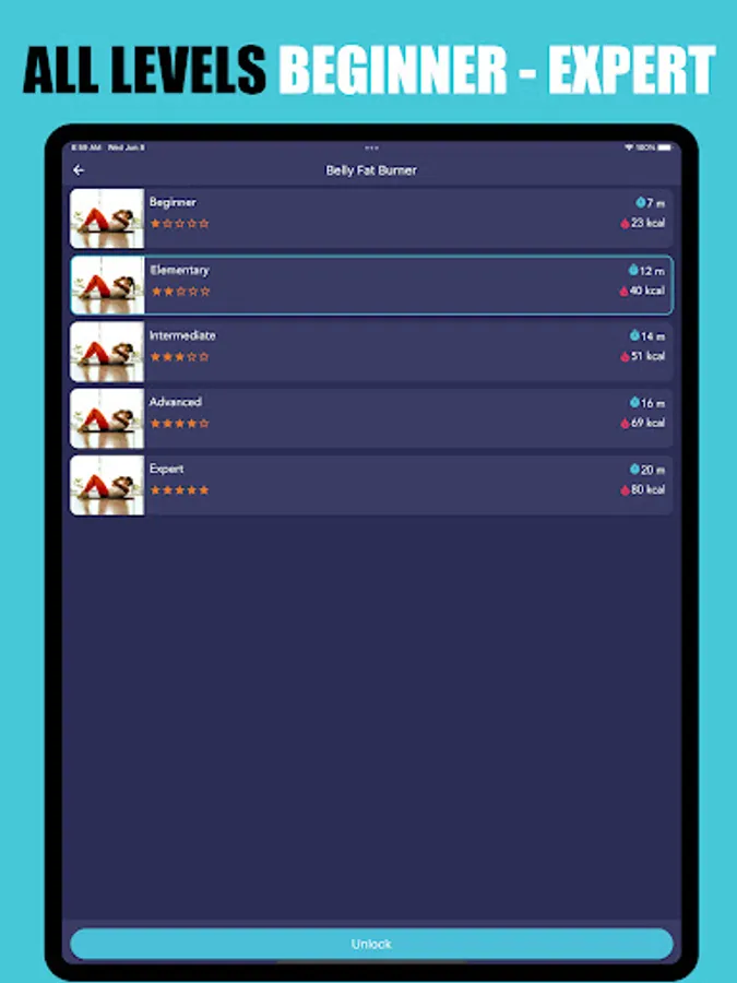 There are also advanced exercises with multiple difficulty levels. In addition, there are specialized exercises to burn fat such as HIIT, Cardio, Tabata, ...