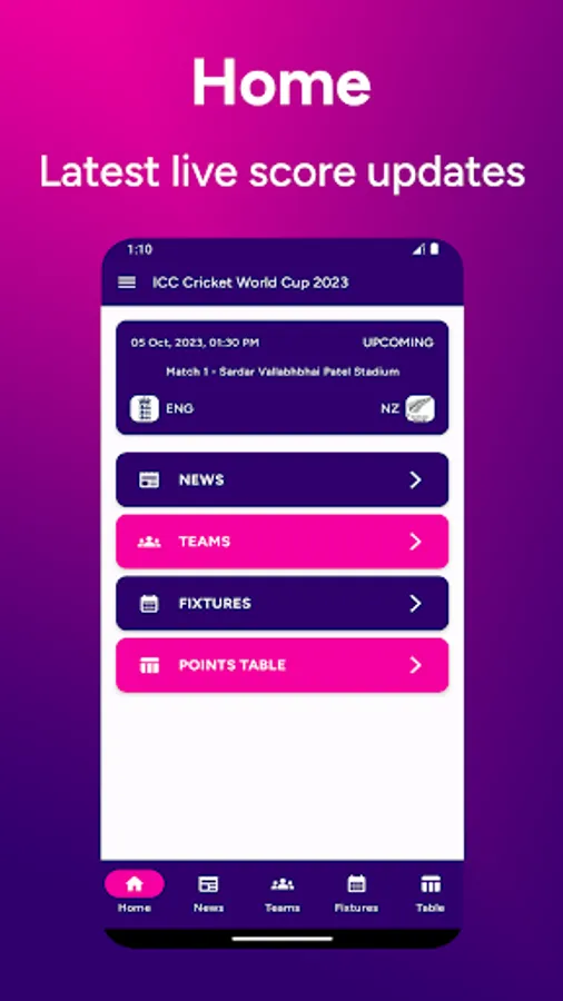 Stay up-to-date with instant updates on live scores, the latest news, team profiles, match schedules, and more.