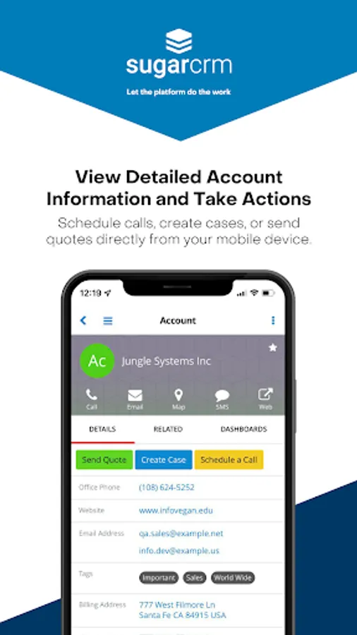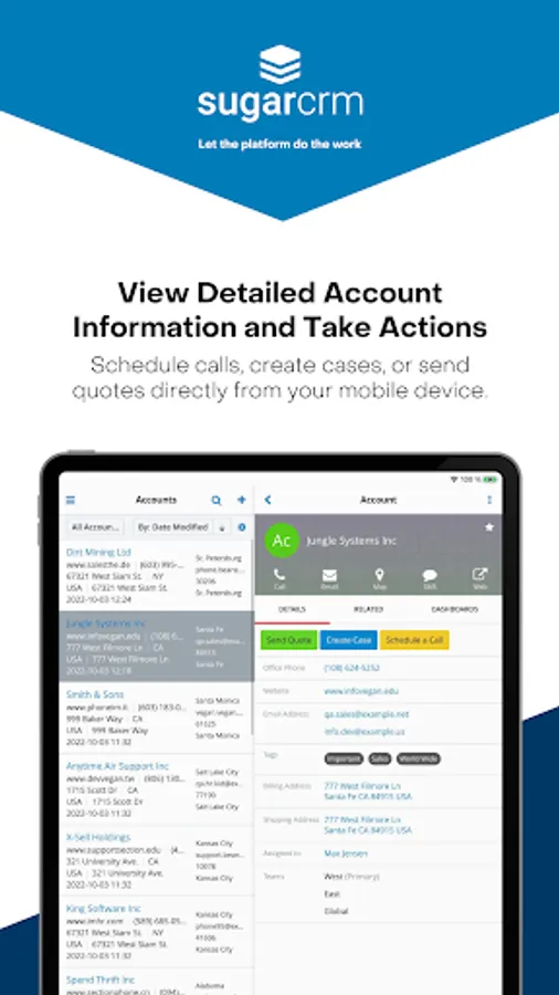 • Schedule calls, create cases, or send quotes directly from your mobile device.