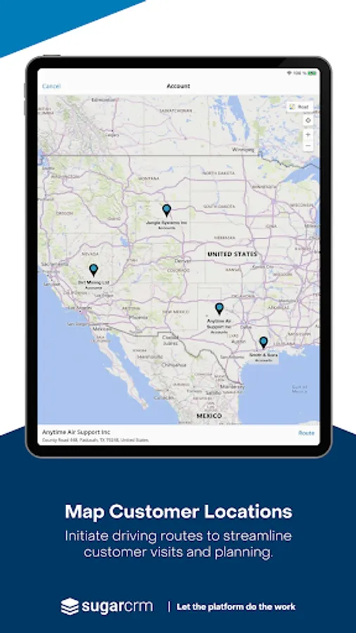 • Map customer locations and initiate driving routes to streamline customer visits and planning.