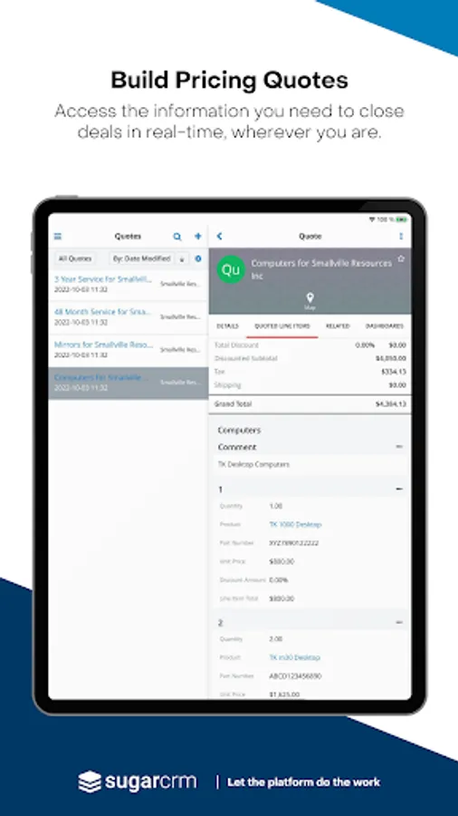 • Build pricing quotes to close deals in real-time, wherever you are.