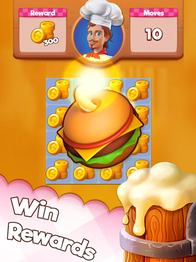 - Win rewards that will quickly help you go from beginner to the most sought-after chef on this restaurant-themed match game.