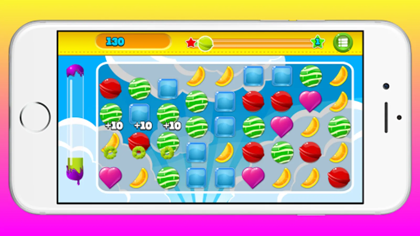 Its unique Cool Arcade Game Match different candies in this tasty puzzle adventure to progress for next Solve them by your smart moves Plan your moves by simply matching 3 or more then 3 candies together. You will get different +10 points on each candy you match.