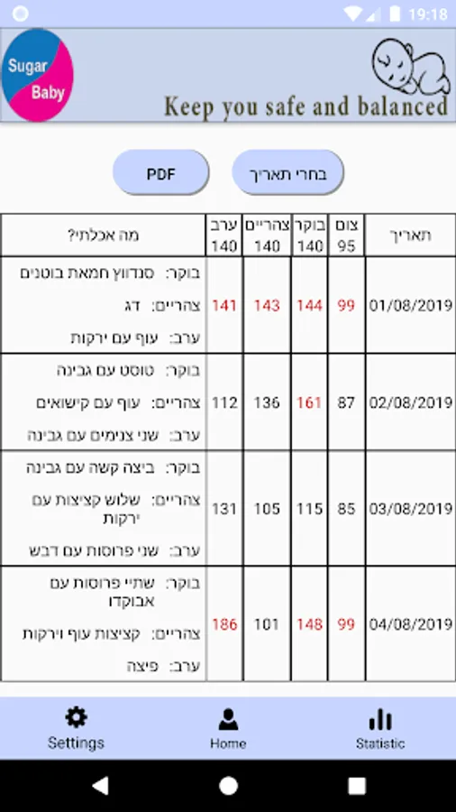 3. הכנסת נתונים – רמת הסוכר + מה אכלת.