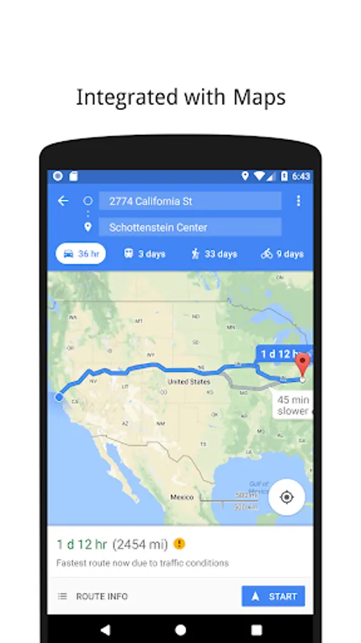> Integrated with Maps, Uber, Lyft and Waze for additional ways to help you get to each venue