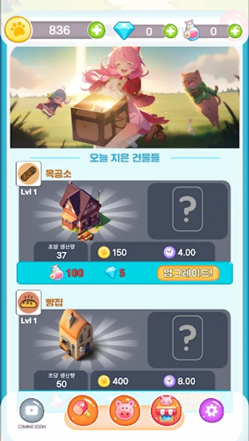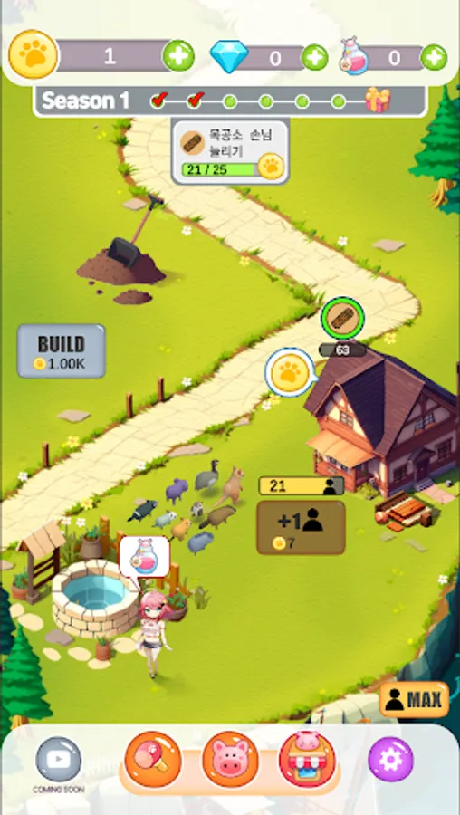 Have fun growing your village with various animal friends. Collect new animal characters and give them part-time jobs! You can collect gold even when you are not online through part-time jobs.