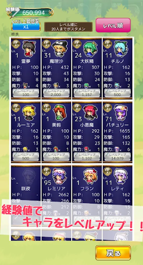 From the high-level characters, 20 people will appear as battle characters in battle screens.