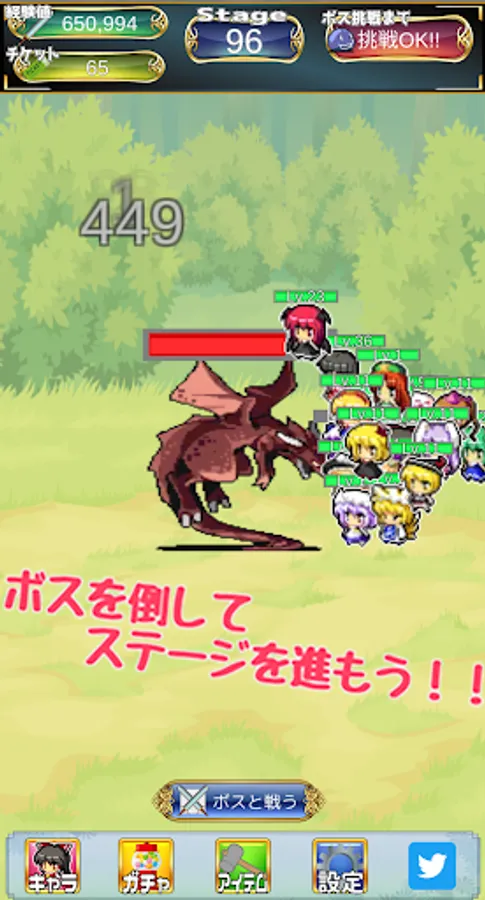 The battle is automatic. You can fight the boss by defeating a certain number of Zako.