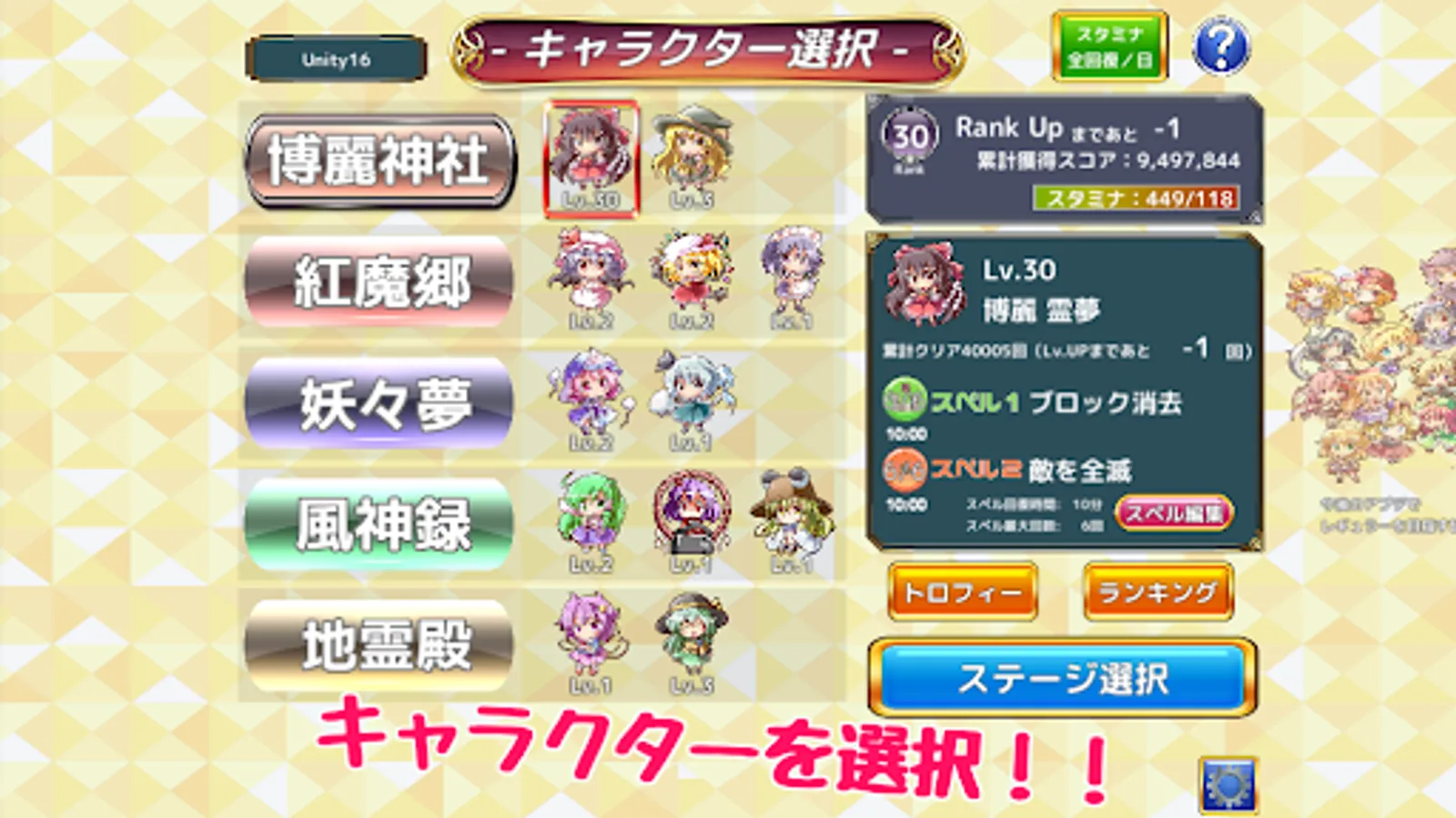 This is a Touhou Project game where you compete for scores earned through side-scrolling action.