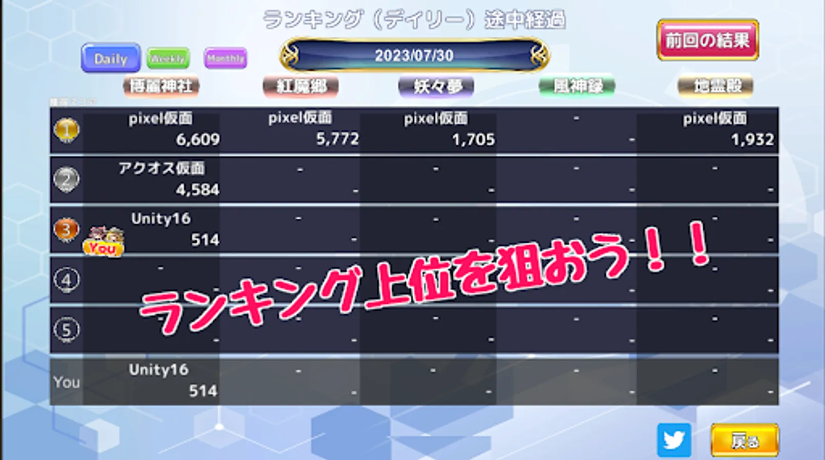 Ranking battles will be held daily, weekly, and monthly for each work that you have earned. Trophies will be awarded to the top 1-3 finishers.