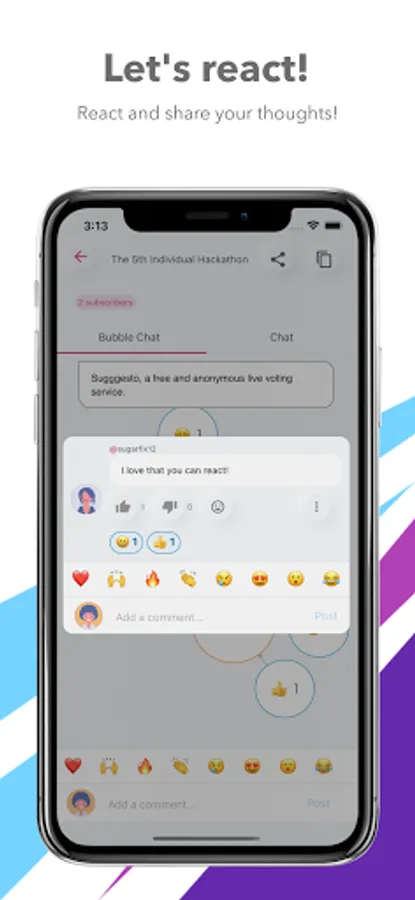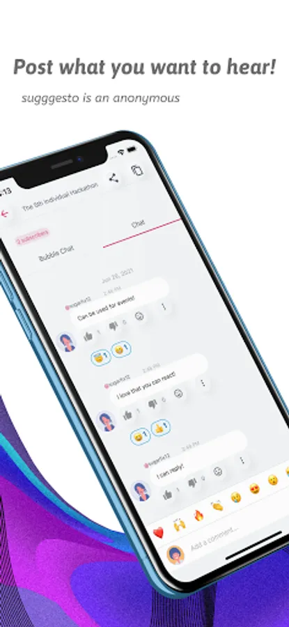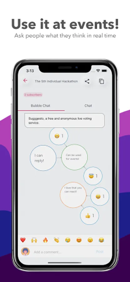 Sugggesto is more than just a Q&A tool. You can reply and react to questions, and they are visualized and displayed in real time. You can even express your feelings and emotions about the event sessions, so let's share our thoughts and make the event more exciting.